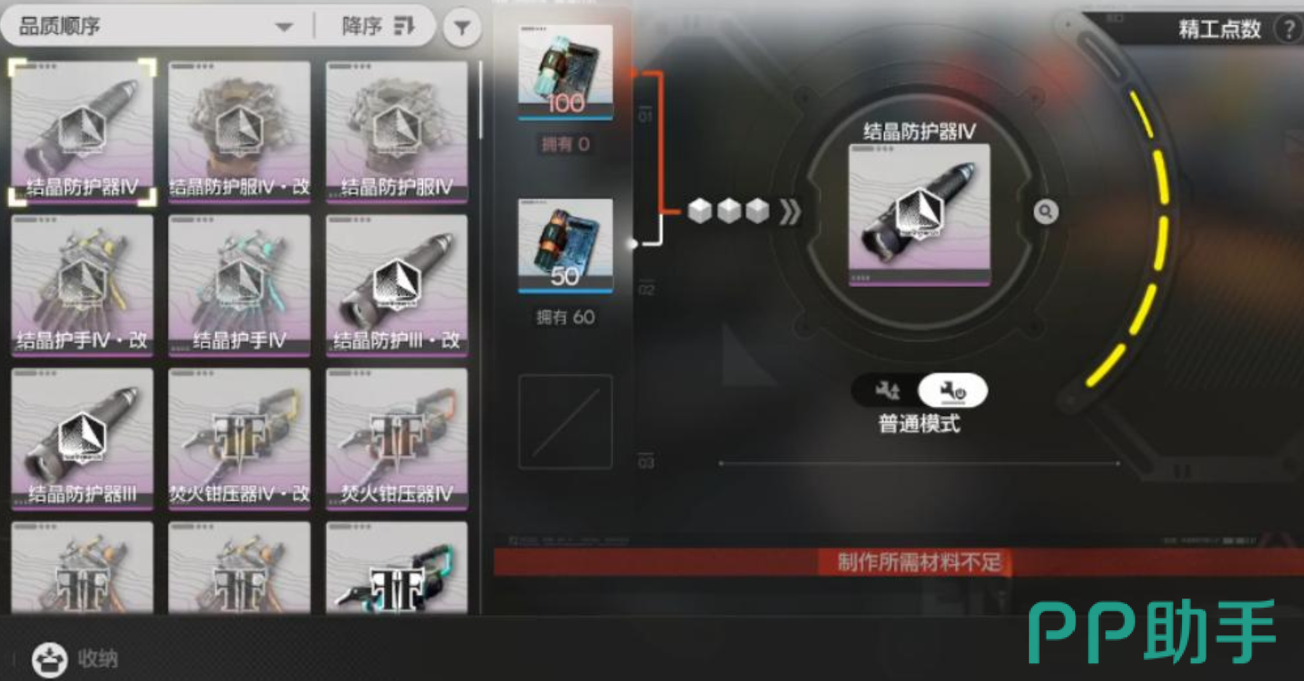 装备系统有四大类,分别为防具,护手以及两个配饰。在游戏当中,这些装备可以通过基建中的装配站来进行制造,不过对于众多的玩家来说,在体验游戏的时候,武器也属于装备系统当中的一种。