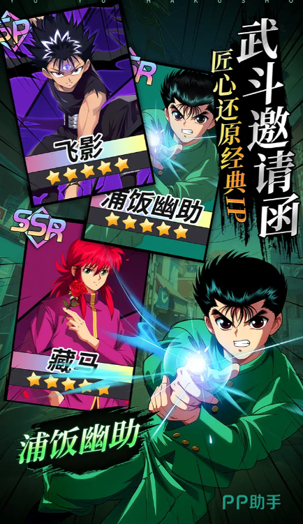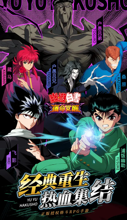 《幽游白书宿命觉醒》是一款采用了原版动漫幽游白书为主要剧情桥段的回合制策略战斗游戏,游戏内的各类强力角色,都来源于动漫的原著作品内,其中就包含有强悍的飞影、拥有双性别转化的藏马,还有最终boss户愚吕弟,这些角色都是玩家耳熟能详的经典动漫角色,不止如此,游戏内还为各个角色制作了专属的技能以及装备,例如飞影的专属装备就是他在原版漫画当中的三眼。