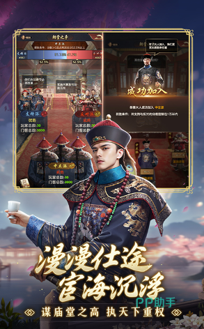 引领玩家踏入明朝时空之旅,让玩家化身为一名官员,体验娶妻纳妾和育儿育女的家庭生活,并在官场的波澜中书写自己的传奇人生。游戏内拥有多样的卡牌角色,彻底革新了传统宫廷题材手游的常规模式。玩家将从九品小官起步,在官场的征途上,通过完成各类任务累积政绩,逐步晋升官职,直至成为朝廷的栋梁之才,并有机会招募门客与各路英才。