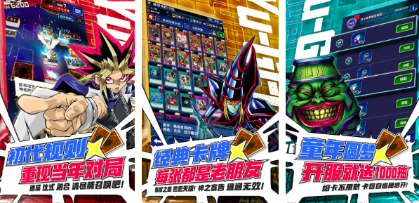 游戏王这部漫画想必小伙伴们都不陌生吧?游戏王决斗链接对动漫里的上千张卡牌进行了复刻还原,不仅为玩家打造出初代规划模式,而且重新对动漫里的精彩对局完成了在线各种经典卡牌,每张都是大家的老朋友,让玩家在线圆梦,开服就送千抽,甚至在游戏角色的外貌设定上都是以原著风格为主。