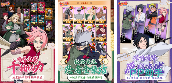 火影忍者木叶高手同样也是一款拿到正版授权的放置卡牌游戏,在这里重温查克拉与火影村这些熟悉的元素和地点,而且游戏当中的角色都是以原作品里的声优进行原班配音的。沉浸式的竖屏体验,简约的操作模式,让玩家可以轻松搭配出更多卡牌阵容,真正实现了无损换将,不必担心前期资源会浪费。