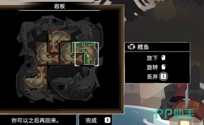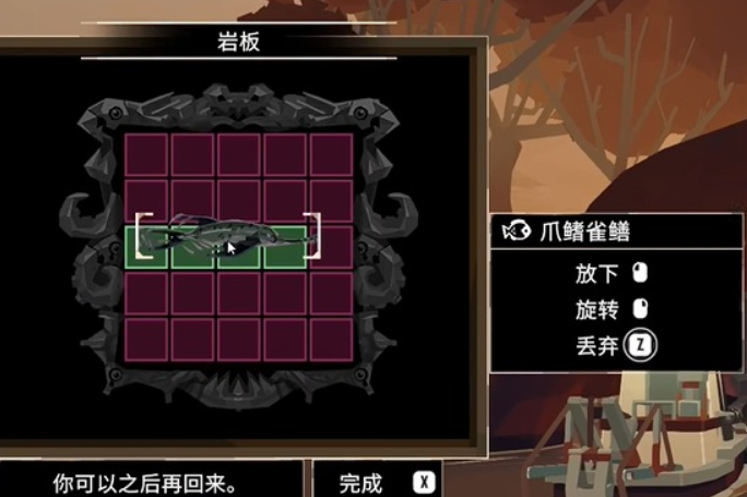 游戏里总共有4个石碑,每一个石碑都会有对应的任务要求,完成这些要求之后就能获得相应的奖励,首先第一个石碑在大罗马岛,石碑会要求玩家在有限的空位里放置5条鳕鱼,想完成这个任务,首先需要让自己的背包里有足够的鳕鱼,可以先在近海区域捕捞,多试几次就能轻松捕捞到5条,有了这5条鱼之后就可以在石碑上不断调整位置,这些鳕鱼会占用三个方格,并且呈一个直角形,玩家只需要点击鳕鱼就可以控制方向。
