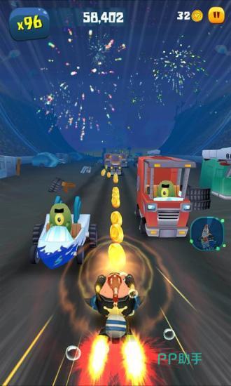 在这里你将化身为海绵宝宝,穿梭于城市的每个角落,游戏采取跑酷的玩法,动画片中的场景将在你眼前闪过,动画片中的小伙伴也将出现在不同的关卡中,每一次遇到障碍物都会有不同的配乐出现,奇妙的冒险之旅就此开启,蟹老板随时出现偷袭你,除了躲过敌人的追踪以外你还需要保护好蟹堡王哟。