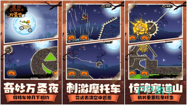 这是一款无比刺激精彩的登山赛车手游。这里有无数的竞技挑战关卡等待着各位挑战,登山过程中会有丰富的障碍阻挡着大家前行,各位可以在此肆意炫技展现技术应对考验。游戏建模3D立体,真实感满满,同时伴随着精彩有趣的各种万圣节场景,能够带给大家满满的快乐。沿途的风景也能带给大家别具一格的精彩竞速体验,推荐大家尽情挑战。
