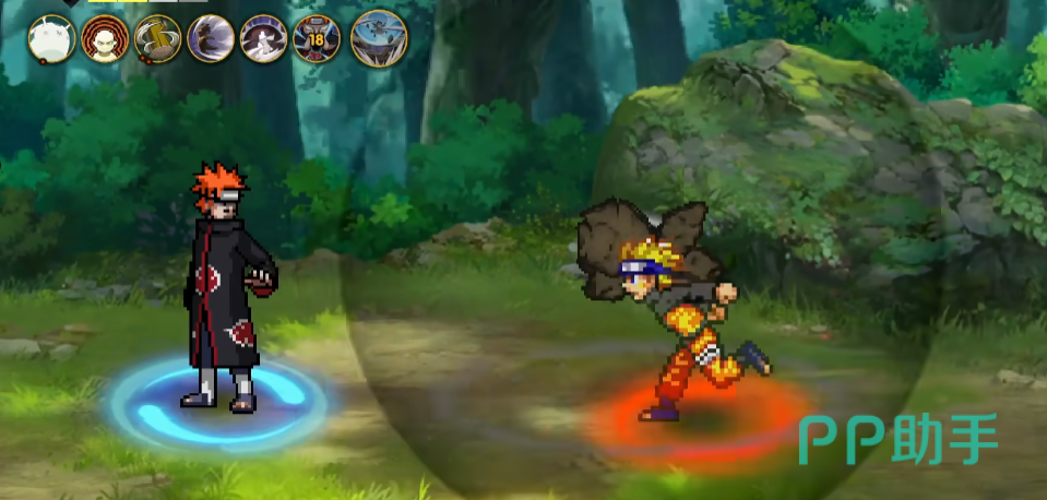 游戏最吸引人的当然是对动漫角色的还原,Q版像素风很好的将人物标志性的特征展现了出来。在最新版本中还增添了鹰眼、佩恩天道、波风水门、万花筒佐助,还增添了新的秘技:阴愈伤灭,气旋。