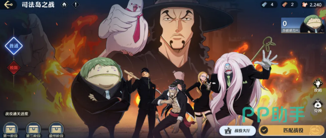 新伙伴,本次更新将推出前代空岛首领“甘·福尔”、空岛四神官、福克斯、杰布拉、以及司法岛“佐罗”,一共9个新伙伴。还会上线新的周常玩法“传奇战役·司法岛之战”。同步开启的还有“道力”系统,通过任务获取道力值来解锁更多的天赋加成。