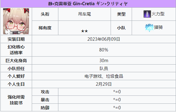 静 克雷蒂亚:属于一个火力型的角色,一般都会具备较高的输出技能。在面对单体目标时就可以直接造成大量的伤害,同时也会具备范围性伤害。在战斗的过程中,是整个团队的主要输出,可以凭借强势的火力,然后造成重创。