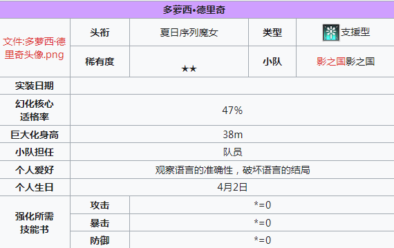 多萝西 德里奇:属于一个支援型的角色,个人的爱好是观察语言的准确性以及破坏语言的结局。从角色的设定来看,会比较擅长使用语言类的技能,然后去完成资源,可以去干扰敌人,然后给队友带来更多的辅助效果。