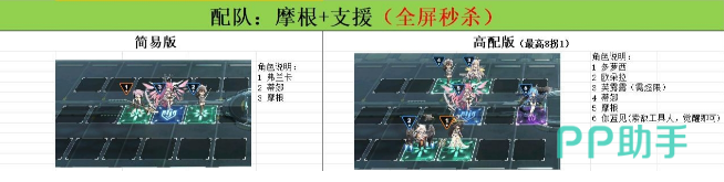 摩根平推流:在这一个阵容中,主要的角色就是法尔奈斯,可以嘲讽并且抵抗伤害,给整个团队都可以吸收火力,在队伍中是一个不容忽视的前排。还有一个就是摩根勒斯,是核心的输出角色,能够群秒敌人达到快速清除的效果。