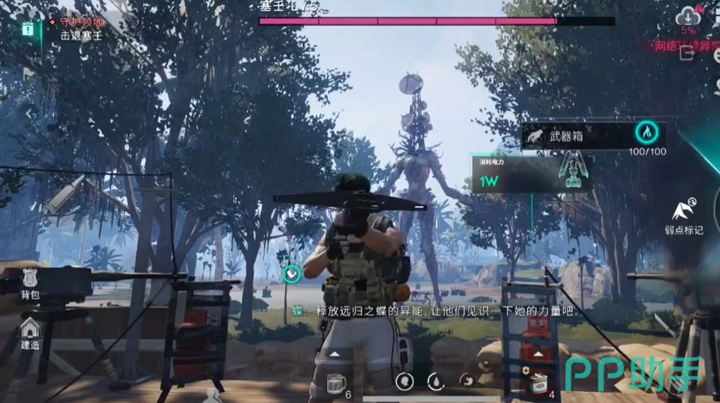 孽生树妖在游戏当中,具有最高的防御数值和最高的生命值,但唯一的缺点是它的移动速度非常的缓慢,所以玩家只需要使用冲锋枪,进行走a,即可成功击败,孽生树妖的弱点是肩膀的两周,玩家环绕他的肩膀进行射击。