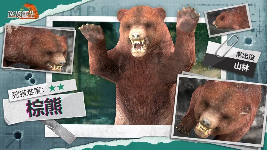 棕熊是游戏中前期玩家面临的主要威胁之一,主要出没在山林区域,体型庞大,攻击性强,对新手玩家来说有一定的难度。然而,随着玩家实力的提升,棕熊逐渐从威胁转变为重要的资源来源。狩猎棕熊可以获得肉类和皮毛,前者是烹饪的重要食材,后者则可用于制作保暖衣物,帮助玩家抵御寒冷环境。