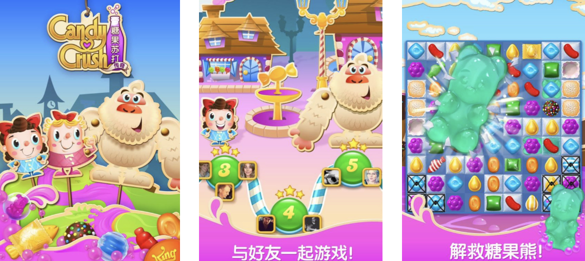 在卡通页面中,玩家将来一场精彩的糖果消除体验。物体较为丰富,除了糖果熊之外,玩家还会遇见各种紫色苏打。在联机方面,玩家可以与好友共同作战。消除规则较为简单,在排行榜系统中,玩家可查阅本款游戏最高分,激发玩家消除的欲望。另外,糖果世界还会出现其他随机元素哦。