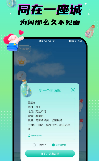 还原微信、qq免费漂流瓶,能寻找到曾经用漂流瓶交友的无限回忆,匿名交友,无限畅聊。更是免费相亲平台可及时到共同爱好新朋友,倾诉秘密。丰富的漂流瓶类型,比如文字剧情真心话大冒险等,有机会快速脱单寻找到心灵的对象。有全新海滩动态基于当前所在的城市位置匹配到与自己相似的用户,有机会擦出火花。