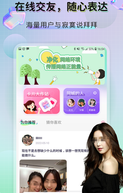 App具有多样化功能与特色,尤其是最受欢迎的交友app,有众多特色功能,通过网络平台展现自我与好友畅聊,释放压力。这些应用结交到更多朋友现实,现实生活中非常内向,经常会出现焦虑的人,在交友平台中也能随意释放自我。方便快捷可随时与人交流,不受时间地点空间所限制,还有多样化玩法。