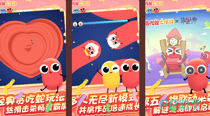 贪吃蛇大作战游戏以传统贪吃蛇为蓝本,通过不断吞食地图上的彩色光点、食物道具来成长壮大,团战模式下玩家可以邀请好友一同游戏,在对战间隙互相交流技巧、分享游戏趣事,共同对抗其他团队,在团队配合中感受并肩作战的乐趣。