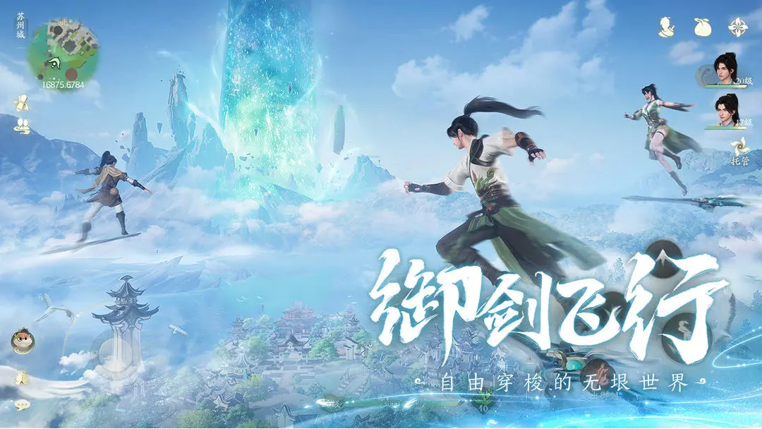 御剑飞翔。御剑是许多仙侠剧的设定,这一新手游实现自由御剑飞翔,每位玩家都有专属御剑,参与竞速比赛等。