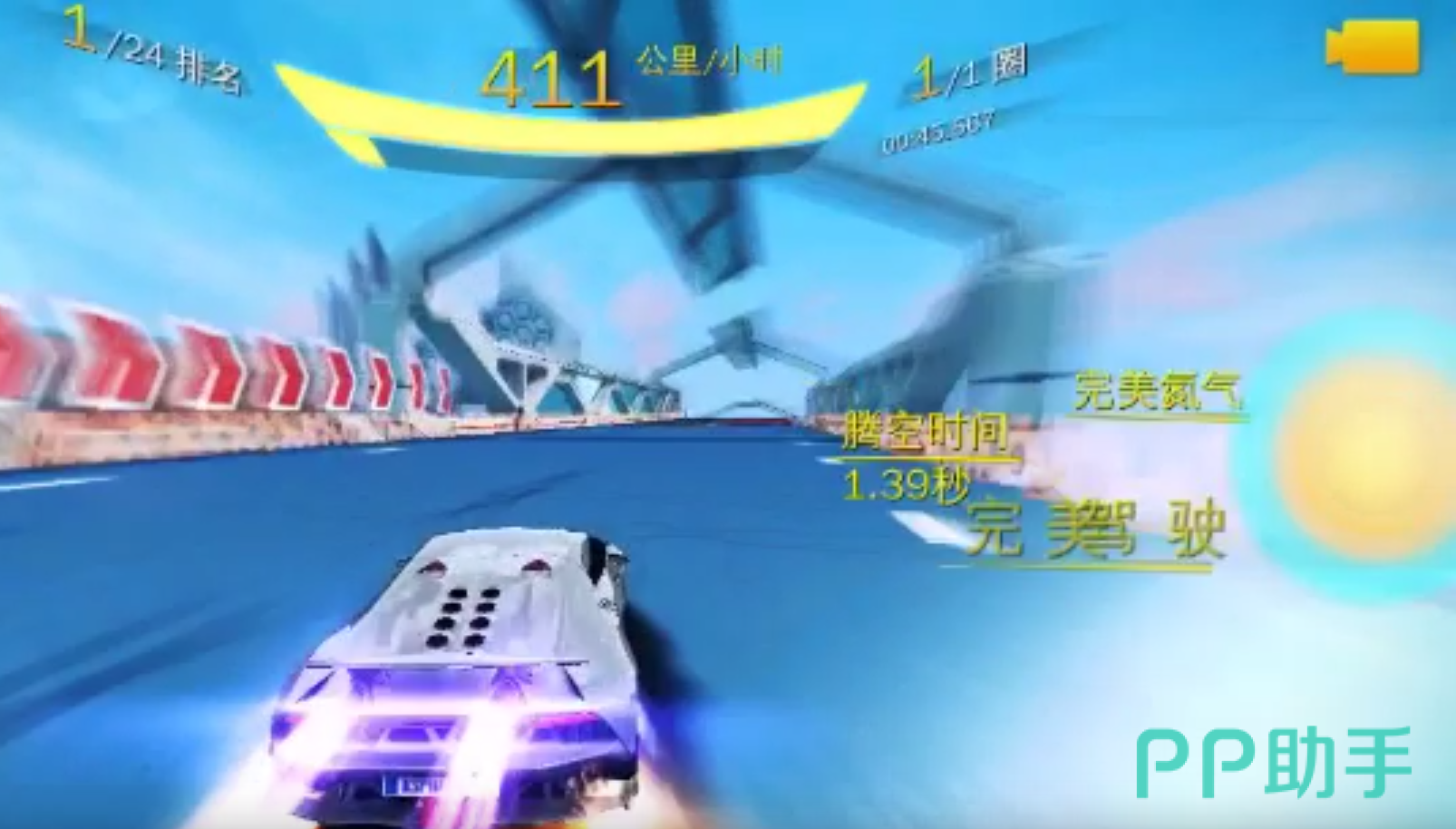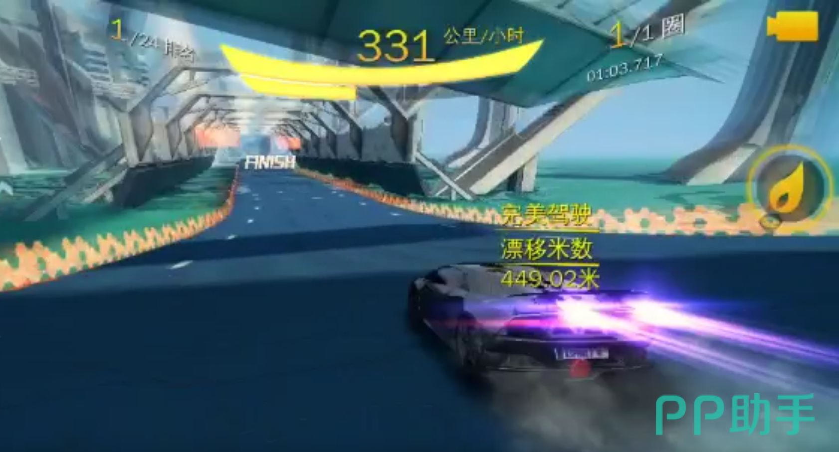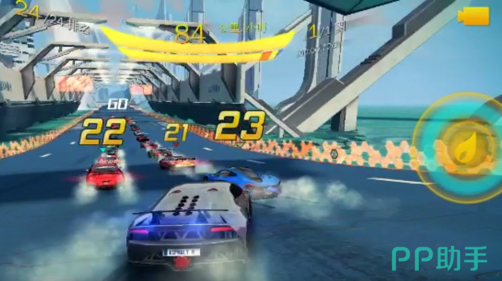 刚进入关卡之后会进行倒计时,这时前方会出现大量的车辆,我们好右边的车道。这样就可以规避他们,避免与他们冲撞,从而影响个人速度。接着记着的话,贴着右边的跑道一直漂移就可以遇到一个氮气,捡起来就能加速了。