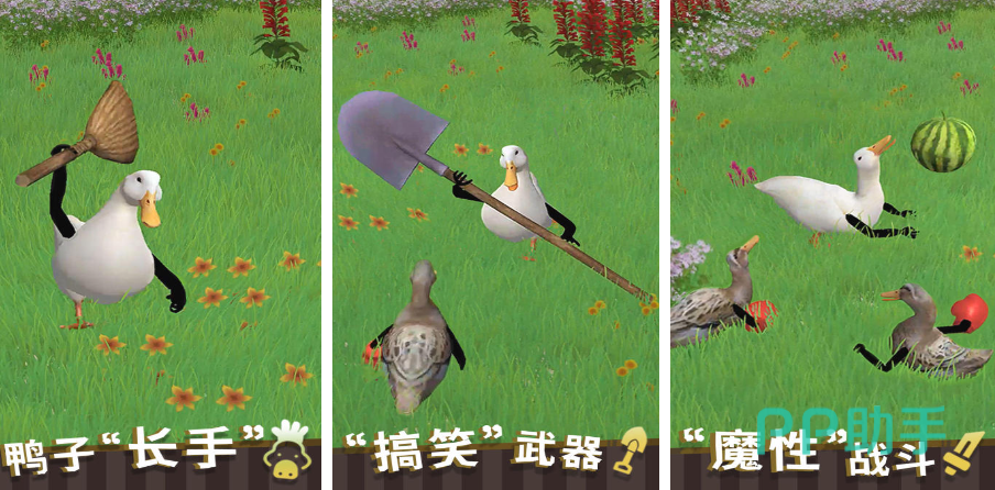 这款游戏就非常的魔性,首先是鸭子的形象非常魔性,鸭子进行了拟人化的创作,长出了两只可爱的手。黑白经典的配色能够一眼就抓住人的眼球,同时场景中有很多搞。怪的新奇元素吸引着大家。另外还有很多搞笑武器等细节设计,都能够带给大家快乐的感受。同时给玩家自由发挥的程度也很高,玩家可以招募鸭子进行队伍组建,同时还能够利用鸭子的特殊技能打败对手。胜利以后,还可以获得各种奖励武器。