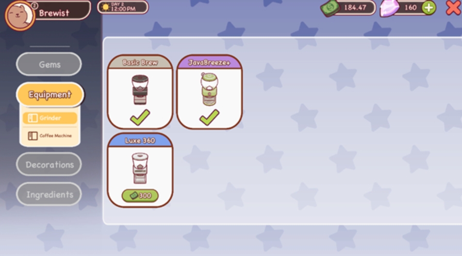 首先就是准备需要的材料和工具了。材料方面:全脂纯牛奶、食用冰块、草莓味糖浆、浓缩咖啡,有时候还需要准备草莓来装饰。这些材料都可以在达到一定等级后,在商店内采购。工具当面主要是必不可少的咖啡机、玻璃杯和勺子了,要确保齐全和干净。