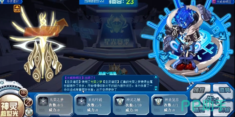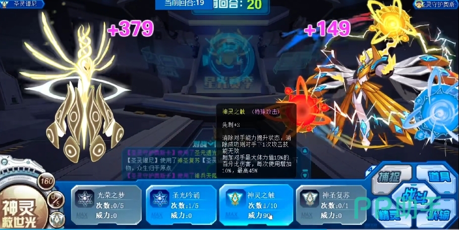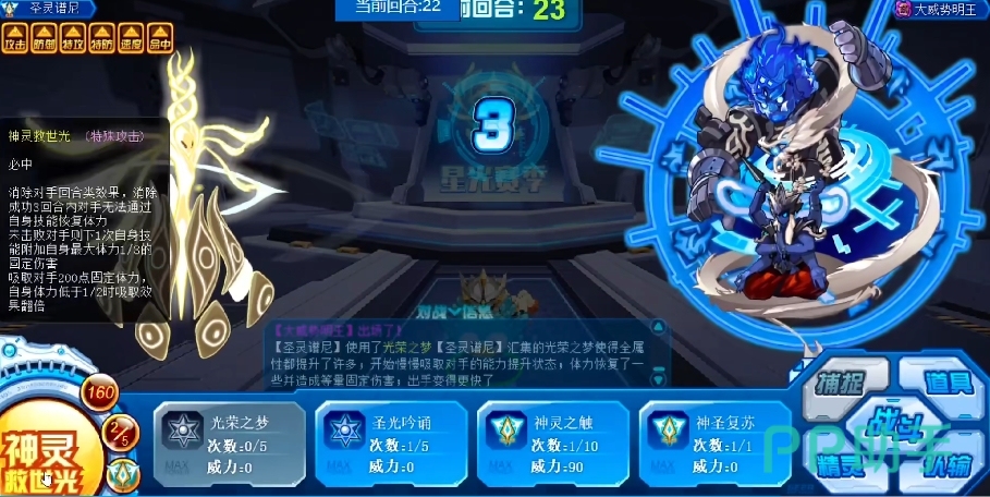 此技能在先手效果上占据着得天独厚的优势,拥有50%的概率使对手的属性技能瞬间失效,仿佛给对手的技能施了魔法封印,而且当它先出手时还能够降低对面的能量数值获取,璨灵圣光是一个必中的技能,在2回合内能100%免疫对手的攻击伤害,并且在接下来的5回合中,每回合可稳定恢复自身体力的1/3。