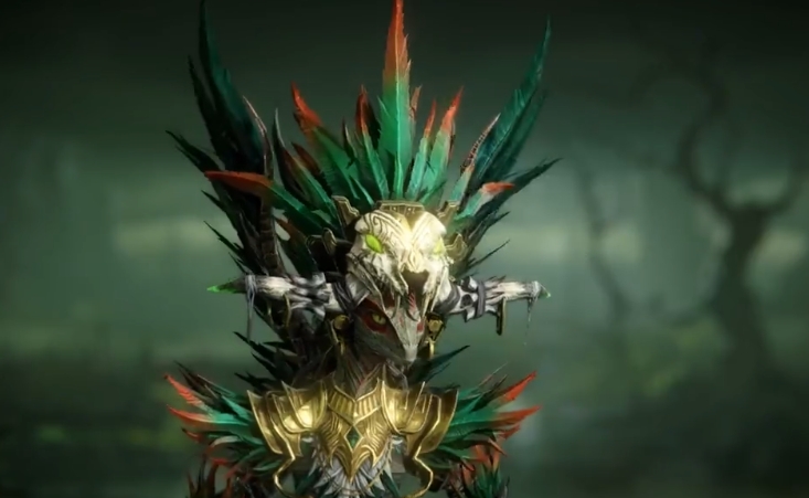 沼泽女王·蕾塔的设计灵感来源于变异的青鸟,这让她的形象充满了野性的魅力,她拥有色彩鲜艳的羽毛和毛发,以及一双锐利的兽眼和鸟类特有的尖嘴,她头上独特的花纹似乎是蜥蜴和鸟类特征的结合体,作为一名辅助型英雄,她的主要职责是削弱敌方的各种增益效果,从而持续降低敌人的输出能力,她的队长技是一项适用于历练之域战斗的技能,能够为所有友方提供45%的生命值加成。