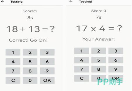 想要考验玩家在算术这方面的水平,这款以算术为主的小游戏,也是不错的选择,无论你是哪个年龄段的,都需要在规定时间内,根据题目,回答正确才可以获得分数。看上去是以简单的算术为主,包含了大家常见的一些数字,不过却因为融入了加减乘除各种各样的内容,还有规定时间,所以你在玩的时候,一定要有清晰的头脑。