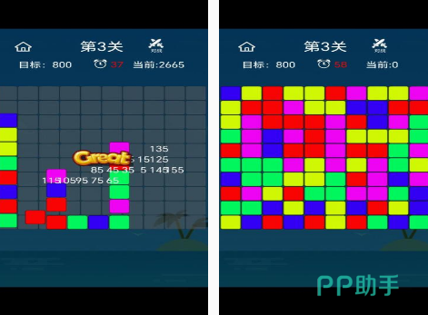 在以小方块展开消除的,这款益智游戏中,大家可看到,虽然每个方块的大小一样,不过因为颜色不一样,所以你在玩的时候,需要及时的区分,每个方块的颜色,利用正确点击同样颜色方块,进行消除的方式来获得分数。还给大家设置了很多的关卡,你需要在每次闯关的时候,根据规定时间到达相应的分数,才可进入下个关卡。