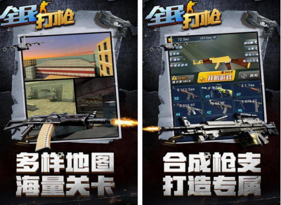 这款能展开全民打枪的游戏,不仅是操作比较简单,通过一枪爆头来打击敌人,更是可给大家带来紧张刺激的射击手游。你在进入游戏以后,既可完成枪械的合成,打造出专属的武器装备,在与敌人作战的过程中更顺利。还具有多样的地图以及很多的关卡。无论你在任何的环境下,大家都能成为里面的英雄,享受以一当百的实力。