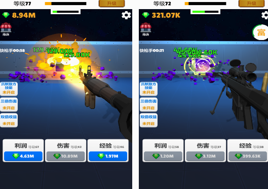 大家在体验这款玩法比较简单,又充满趣味性的休闲打枪游戏以后,就可看到简单的操作方式,给大家带来快乐,更是设计风格比较简约的。玩家通过选择里面各种厉害的枪械武器以后,就能凭借着丰富的设计水平与对手展开较量,还有炫酷的战斗场景,无论是枪械所具备的伤害力,还是所获得的经验等,大家都需要凭借实力,才能知道具体的水平。