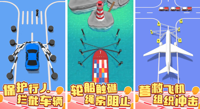 任务是观察充满挑战的地形,寻找稳固的固定点,利用有限的绳索构建防护网,以应对天灾人祸,守护生命安全。你需敏锐地观察四周,精心挑选连接点,将绳索巧妙编织,形成一道道坚不可摧的防线。游戏不仅设置了紧张刺激的主线闯关,还融入了丰富的皮肤解锁玩法,为你的冒险增添更多乐趣。