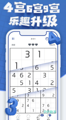 这是一款挑战游戏,巧妙地将传统数独智慧与趣味闯关模式融为一体,为玩家打造了一款既动脑又放松的休闲佳作。在这里,玩家将在数独的世界里遨游,逐一解锁各式各样的关卡,面对层出不穷、难度不一的数独难题。解决这些数字谜题,不仅需要玩家运用逻辑推理能力,还能在一步步解锁新关卡、收获奖励的过程中,享受如同冒险般的乐趣。游戏界面设计简洁雅致,操作方式简单明了,既能让玩家的大脑得到锻炼,又增添了满满的趣味和挑战。