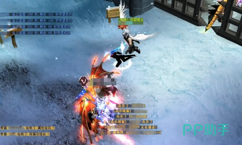 每座城门之后都有几个守护石像,石像后有可以获得的加成,例如灵魂药水和加速药水等等。当所有石像被打破后,攻方就能进入龙塔,其中两个机关右上角有刻录点,当同联盟中的两个人分别踩住机关时则视为刻录成功,同时还需要盟主刻录印记,但这时这三名人员都不能受到攻击,否则视为失败刻录。当一方刻录成功后,攻守方会瞬间交易位置,继续开启新一轮的攻守。当时间来到晚间八点三十分,攻城结束时,谁最后刻录成功谁就获得了胜利。