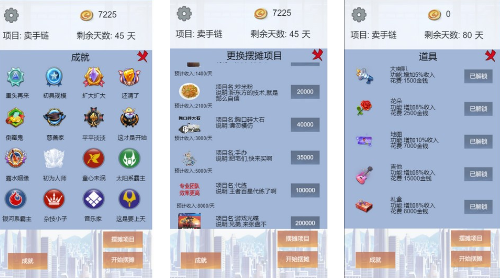 这个游戏设定非常有趣,一个成功人士因为破产一夜返贫,甚至变得颓废沮丧,但是走在一个充满烟火气息的小街中,他的信心被点燃,燃起了一个创业梦,他用仅剩的一点财产,开始了他的创业摆摊生涯。但是摆摊同样也非常激烈,他如何才能在如此激烈的竞争中,通过重重关卡让自己的货物卖得更好,这是他需要思考的地方,游戏非常励志,给人一种正能量的引导。