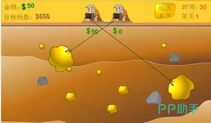 这款具有明显页游美术的双人休闲手游很有意思,黄金矿工的基础规则跟同屏操作相融合,两个玩家要合作快速抓取黄金获得积分,控制系统简单只需掌握抓钩方向即可,双人互动的抓黄金规则互动性拉满,画风尽显滑稽给人带来很放松的心情,相信这款玩法很经典的黄金矿工IP双人作品你会喜欢。