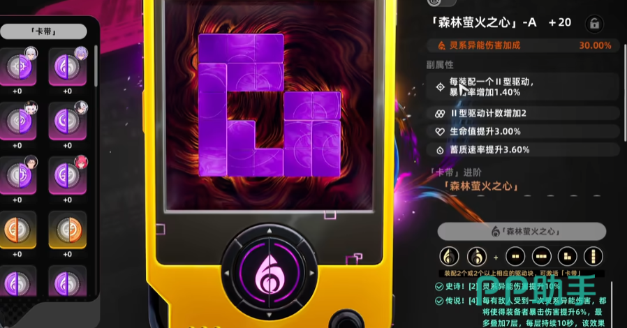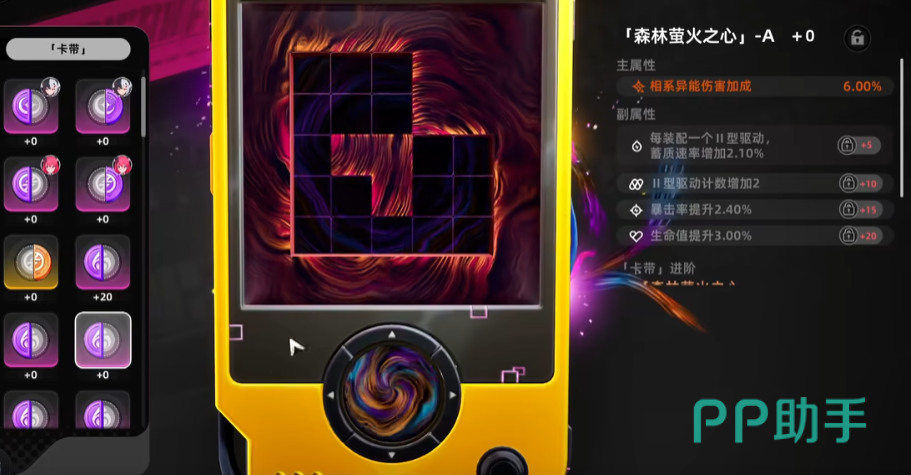 这时上半部分还会有空余的小方块,也要找到对应的方块填补起来,但是这个填补并不是随意的,要根据驱动的类型来选择正确的。不管是卡带还是驱动块,刷出来的时候副属性词条就已经固定了。驱动块的养成比较简单,刷出来好用的直接升级,而卡带的随机性会比较大,而且卡带的主属性会变,它的副属性当中最下面两条不要去刷,上面两条则需要去刷,每个卡带和驱动块对应的升级材料都是不同的。卡带和驱动块都有两种不同途径可获取,一种是消耗体力刷对应副本,另一种就是消耗游戏货币“甲硬币”直接在商店中购买。