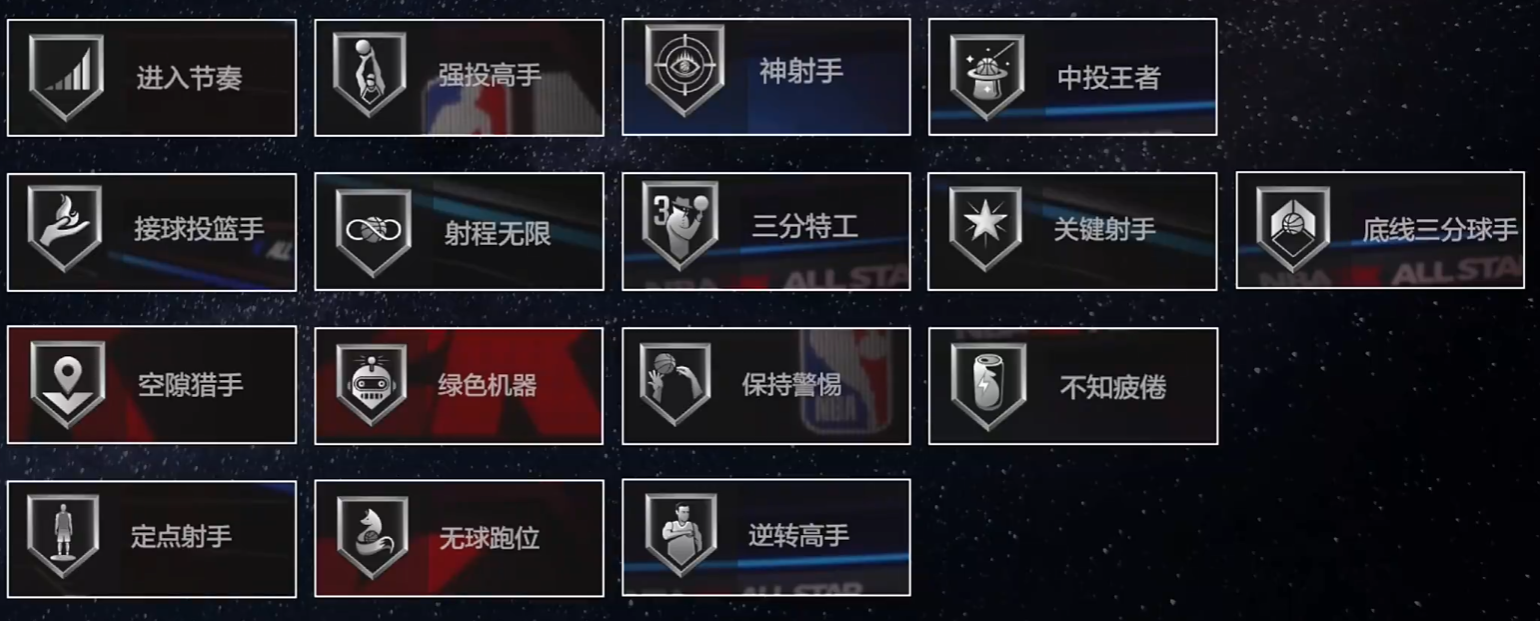 徽章的种类非常丰富,涵盖了球员各方面能力。得分类徽章可以提升投篮和突破等得分能力,让球员的进攻能力更强;防守类徽章则能增强盖帽和抢断能力。此外,组织类徽章可以提高传球和控球能力,让球员更好地串联球队。