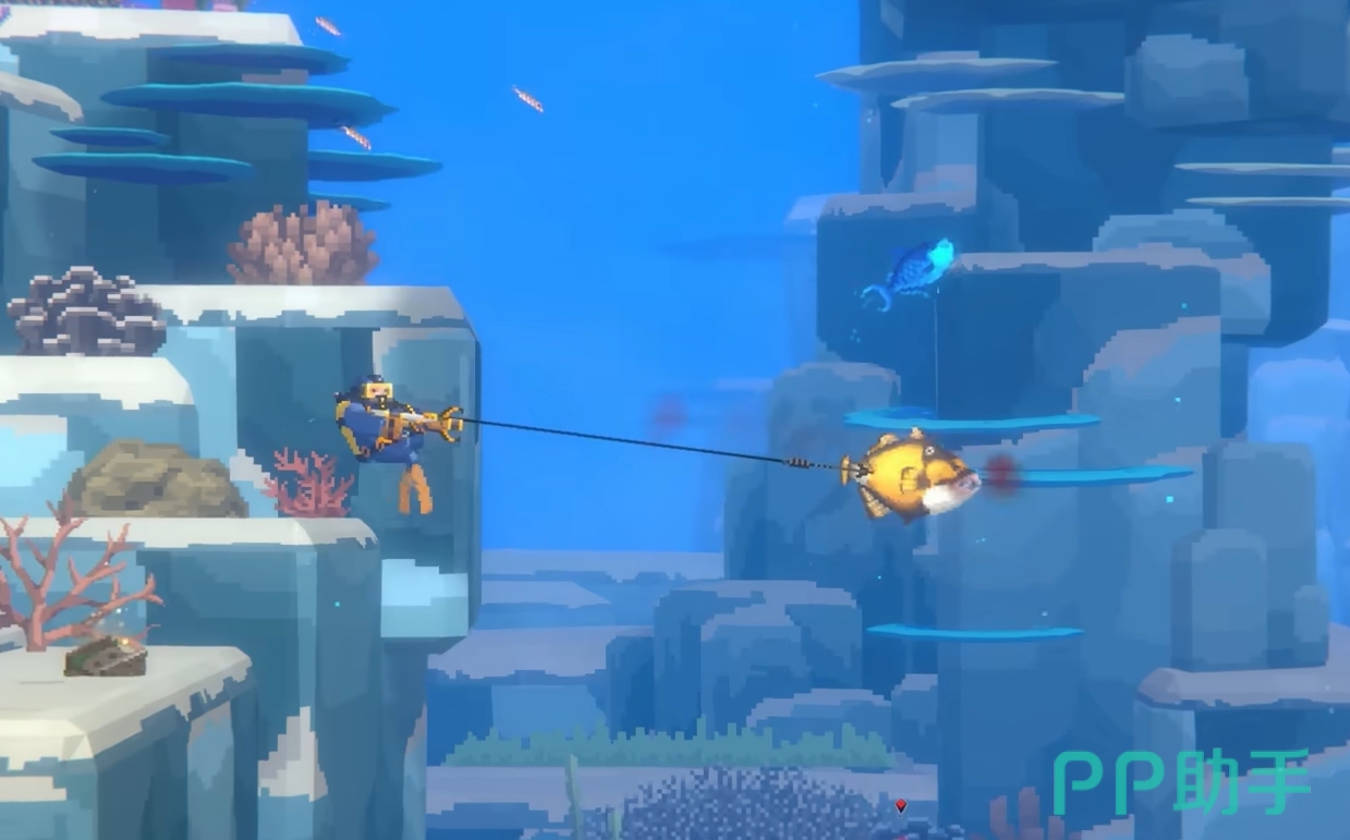 而且游戏的像素画面有着非常高的艺术性,它不光通过色调的变化,来凸显出了海底的不同风光,为人们展现出了非常壮阔的海底景象,满足了人们对海底景色的所有想象。更能通过十分夸张的动画演出,来演绎出游戏中每位角色的性格,使得它所构建出的世界看起来极其的鲜活。