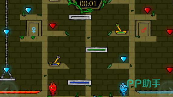 这是一款轻松益智的冒险游戏,为玩家开启了一段别开生面的探险旅程。游戏中设有两位截然不同的主角,火之勇士以其热情奔放的力量著称,而水之精灵则凭借冷静智慧的能力见长。玩家需巧妙协调二者的行动,发挥他们各自的独特优势。本游戏的一大魅力,在于其直观的操作与平易近人的规则。无需繁复的操作步骤或深奥的游戏机理,仅凭简单直观地控制两位英雄踏上冒险之旅,便能迅速融入游戏,轻松应对各种难度的挑战。