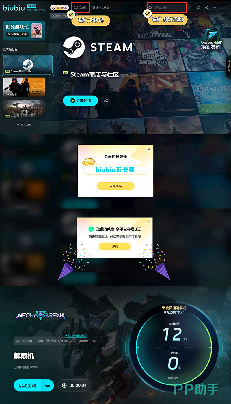 解限机这款游戏从目前来看各方面的素质都非常高,但是游戏所需要的容量很大,咱们如果是正常下载的话那么速度会比较慢。如果想要保证速度的话则是需要加速器了。biubiu加速器所拥有的电竞极专线可以让我们在下载时的网络变得更加稳定。在现阶段新用户可以获取到3小时的免费加速。如果使用兑换码【biubiu不卡顿】的话,那么玩家还可以额外获取到3天的免费加速。