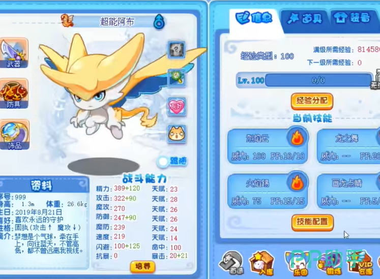 基础技能是实力的基础,阿布的初始技能有火焰踢、龙之舞、烈焰云,火焰踢是初始火系物理技能,威力75,攻击对手时,有几率让对方陷入烧伤状态,在面对草系、冰系等弱火属性的宠物时,使用火焰踢能打出高额伤害,并且烧伤效果可在后续回合持续造成伤害,龙之舞是初始龙系变化技能,使用后阿布自身的攻击和速度属性会得到提升,这是一个非常实用的技能,在战斗开始阶段或者面对速度和攻击力较强的对手时,先使用龙之舞,能让阿布在后续的攻击中占据优势,更快出手且造成更多伤害。