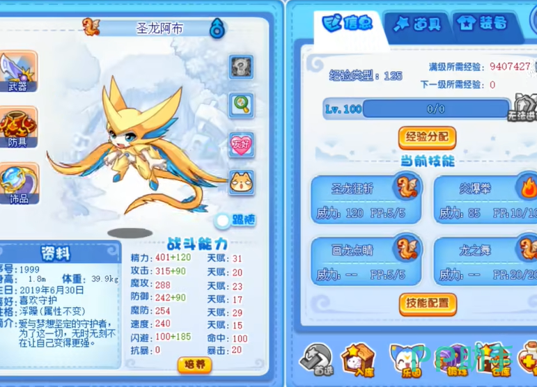 圣龙狂斩是物理技能,当对手处于冰冻、睡眠或烧伤状态时,使用圣龙狂斩可提升阿布的魔攻和攻击等级,这就需要与其他带有控制或异常状态技能的宠物配合,先让对手陷入对应状态,再切换阿布上场使用圣龙狂斩,大幅提升输出能力。