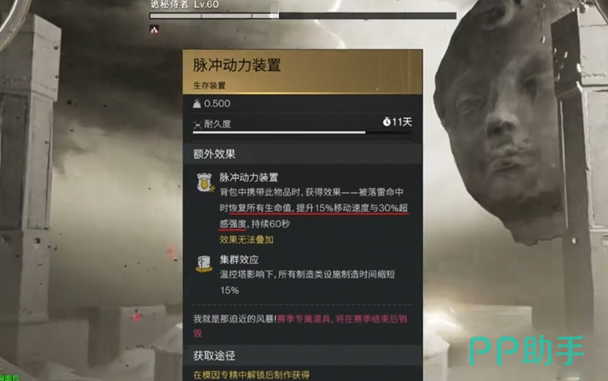 脉冲动力装置所提供的所有增益效果,如生命值恢复、移动速度加快和超感强度提升,将持续60秒。这段时间足以让玩家在关键时刻获得所需的支持,以完成重要的任务或战斗。