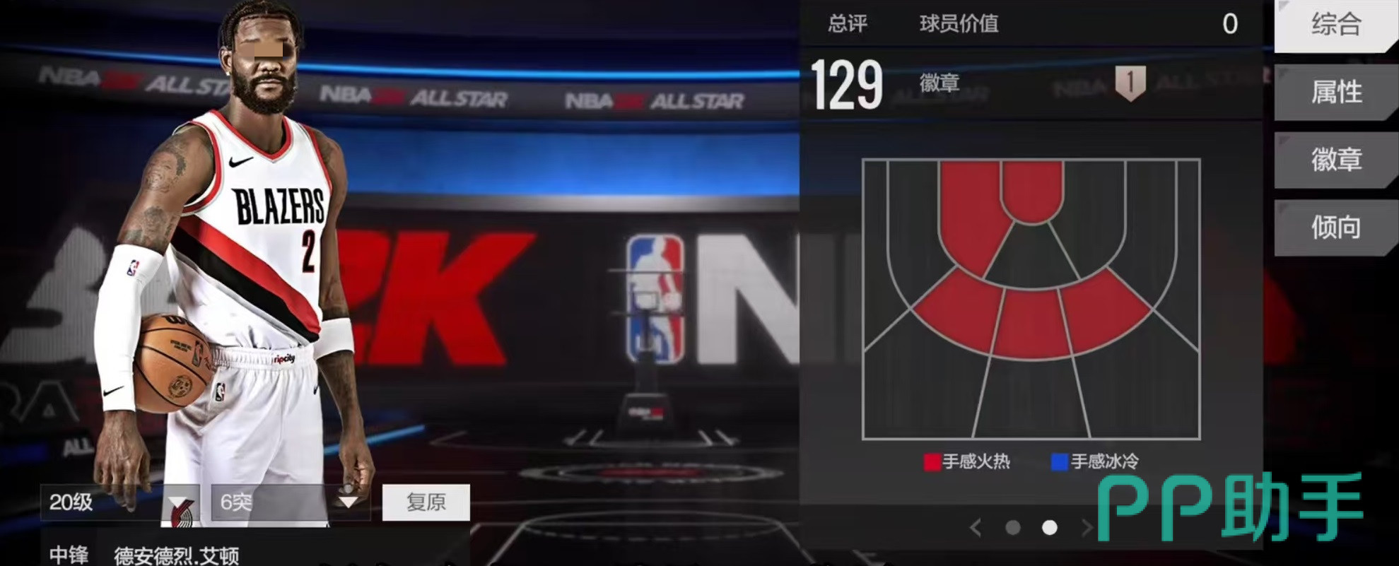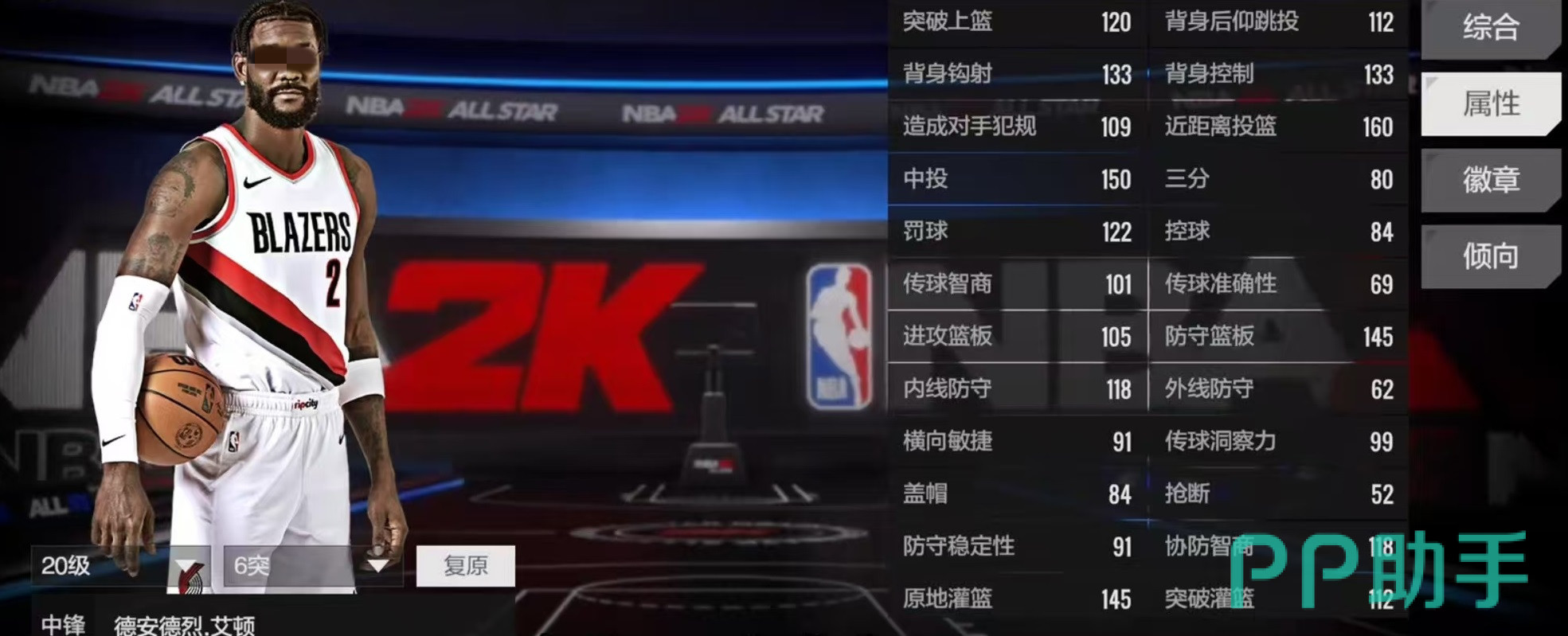 在具体属性方面,艾顿的中投150,这样的属性使得他在中投方面非常稳,当然三分只有80,这一点就很低了,所以飙三分球肯定是行不通,只能利用中投来取得突破。其他属性方面,进攻篮板105,防守篮板145,防守篮板的数值给的很不错。内线防守118,比较普通,外防62,盖帽84,这两个属性也是比较随意。站扣145,跑扣112,弹跳126,力量133,这几个属性还算比较不错。速度112,虽然数值不算高,但是在中锋里面已经算是比较快的一个了,体力145,体力还算不错。利用速度和体力,可以在协防方面获得一定的优势。