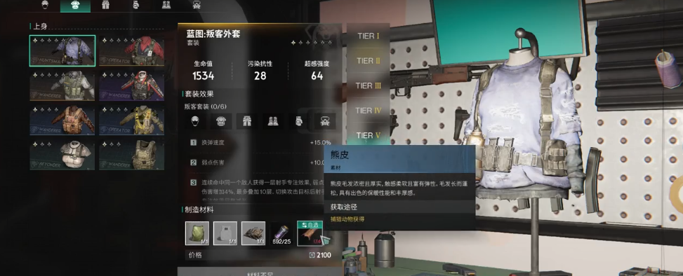第二点就是携带的材料,不带的情况也不影响游戏体验,毕竟在落地之后有一定的保护期,在这个期间不会轻易冻死,想带点材料的朋友可以带8张熊皮,这在之前的剧本很容易获得,转出成本又比较低,能获得10点的寒冷抗性,10度以下击败敌人,还能回复3%生命值,对于前期探索的收益还不错,鳄鱼皮以及羽绒都有比较高的寒冷抗性,前期阶段不是很用得上。