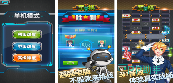 这款军旗霸王争夺赛,需要玩家采用极高的智慧和神奇的技巧,创造出属于自己的胜利。运筹帷幄,决胜千里,只有勇者才能在军棋中拥有抢占先机的可能。这款手游支持多种军棋玩法模式,既有传统的四暗双明,也能够双人在线对战。如果玩家喜欢人机,也可以大战NPC。每一盘军棋都可以保存观赏,而且人机对局采用了先进的AI算法,难度超级大。