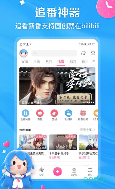 动画纪录片各类型视频应有尽有,无论哪种视频在播放之前都不需要观看广告,海量精彩番剧等你来选择,有我们喜欢的经典动漫,比如日韩漫画,海贼王或者是一拳超人,此外还有特色十足的国产动画,比如斗罗大陆凡人修仙传等,可详细探索近几年国产动画高品质制作以及全新的虚幻引擎,除了这些之外,也有丰富的电影。