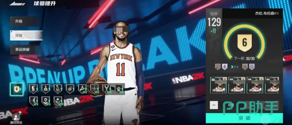 突破是球员质变的关键点,能解锁更多高阶徽章。突破分为6个等级,随突破等级提升需要的突破卡数量也越多(1/3/5/10/18/30),满突需30张同卡。虽然耗费较大,但突破后的球员在能力和战术适应性上会有巨大提升。
