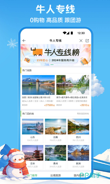各类型票务都能在线上购买,想要享受快乐的旅行服务就在途牛,快乐就此开启。超过几千万用户都已使用为线上线下消费者提供跟团自助、景区门票等多种旅游产品,酒店、机票、汽车票等超级齐全。当前用户的碎片化时间越来越多,根据人们的具体实际情况与趋势,详细推送出自主定制模式,通过线上购票,任意组合出行方式畅快出游。