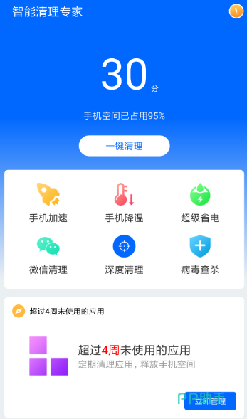 智能管家作为智能清理加速应用,专为健康所推送,有快清模式,释放空间的同时更加省心。有cpu降温特色内容手机发烫,快速降温,确保电池寿命使用更长久。