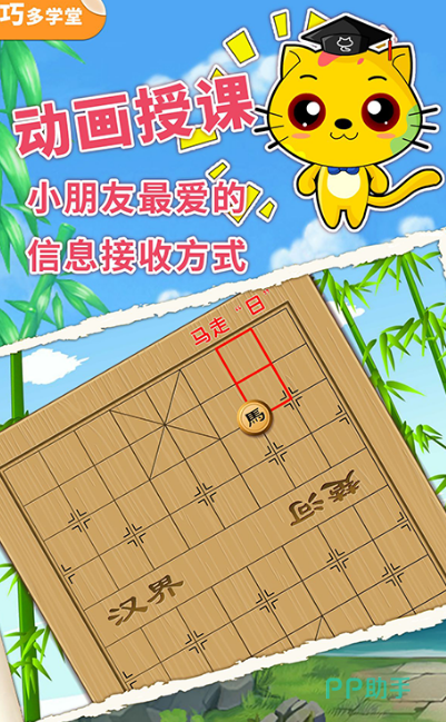 助力儿童轻松学习象棋专为宝宝设计的创新性教学app,更是出色的启蒙软件,通过各种特色游戏培养孩子的专注力判断力以及思维逻辑能力。采用儿童比较感兴趣的动画教学方式,让孩子学会主动思考,也能对学习充满好奇心,时刻保持足够的兴趣爱好。除了有象棋学习之外,也有当前常见的游戏内容学习视频,包括迷宫、数独等等。